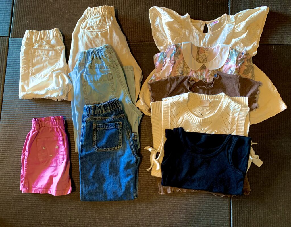 トップスは3枚で最低限量。追加で半袖1枚、ワンピース1枚(両方かどちらか)を購入予定。