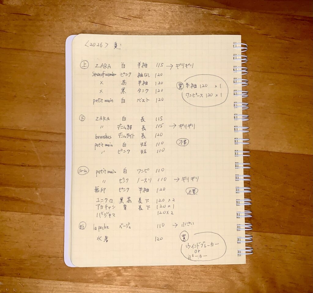 以前、記事にも書いたように、私はシーズンごとにファッションノートを書いていて、手持ちの服と新たに必要な服をリストアップするようにしています。