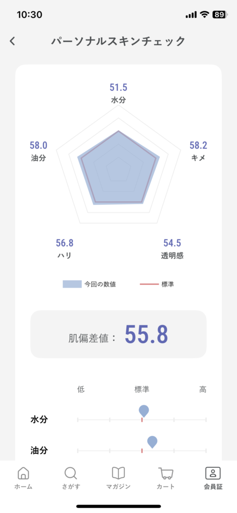 先日ORBISの肌診断をしましたが、肌偏差値55.8となかなかの高評価でした。