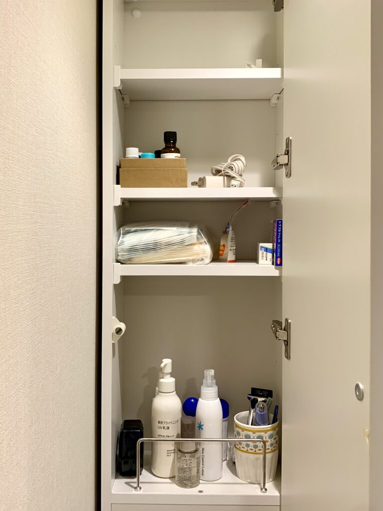 要らないバーを取り外したことで、基礎化粧品の出し入れがスムーズになりました。